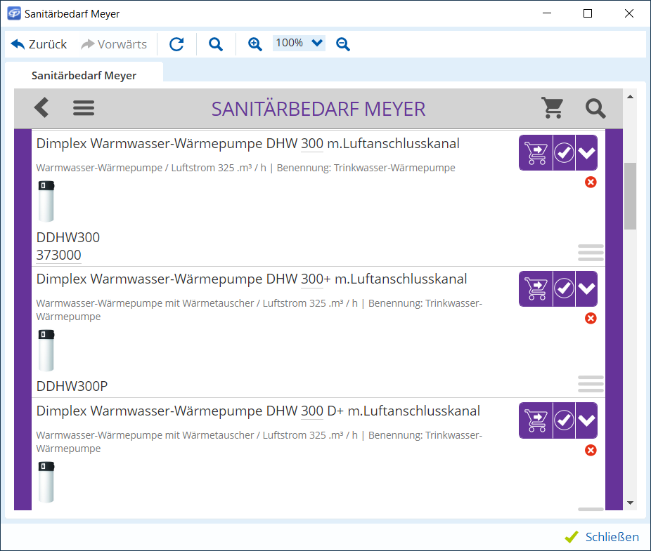 Nun öffnet sich der Webshop des Großhändlers Sanitärbedarf Meyer. Dort sehen wir direkt die Ergebnisse unserer Suche.