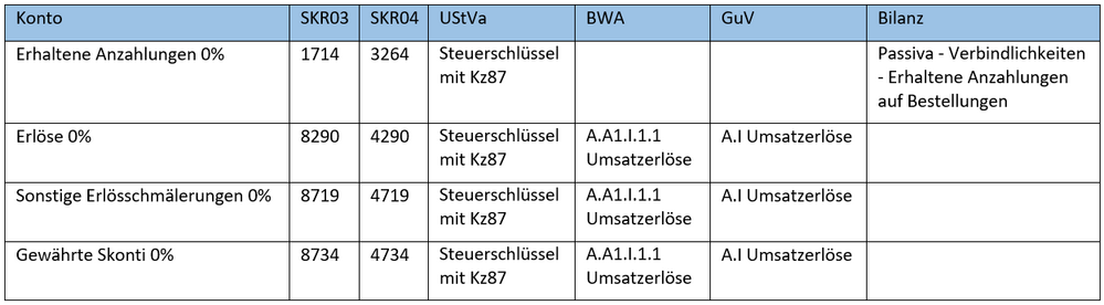 - Geleistete Anzahlungen zu einem USt.-Satz <> Null müssen ggf. in der Endrechnung mit 0% USt. berücksichtigt werden.