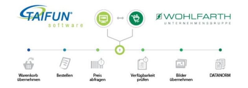Erstellen Sie Ihre Angebote, Aufträge und Bestellungen noch schneller: Durch unsere Anbindung von TAIFUN Handwerk zur Wohlfahrt-Gruppe werden alle Warenkorb-Artikel direkt in Ihren TAIFUN-Beleg übernommen.