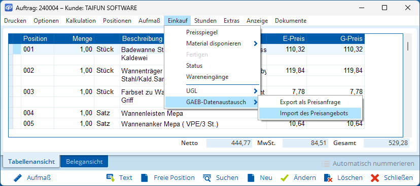Mit TAIFUN+ gestalten Sie Ausschreibungen und Preisverhandlungen effizient und übersichtlich.