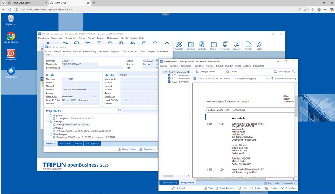 Fügen Sie die gefundenen Produkte nahtlos in Ihre Angebote ein und erstellen Sie professionelle Dokumente direkt in TAIFUN+. So sparen Sie Zeit und überzeugen Ihre Kunden mit klar strukturierten Angeboten.