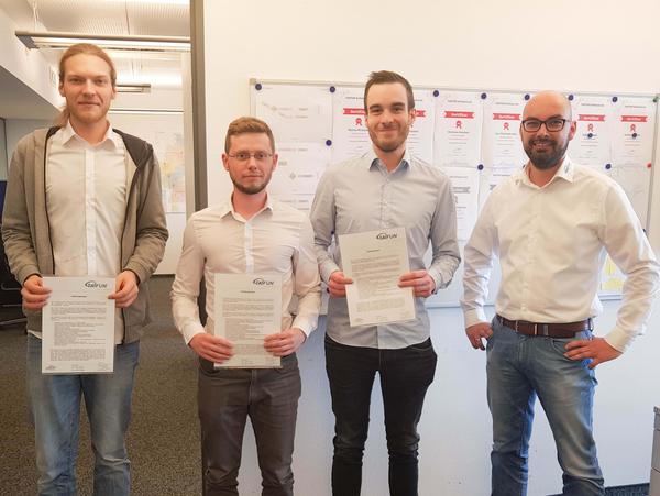 Die Ausbildungszeugnisse hat das Trio gratulierend vom Support-Leiter erhalten. Auf eine spannende Zukunft!