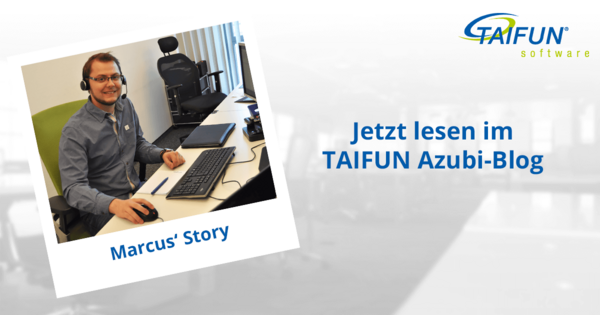 Ihr wollt wissen wie eine Ausbildung bei TAIFUN aussieht und wie genau der Bewerbungsprozess abläuft? Dann liest in unserem TAIFUN Blog den Artikel über Marcus, unserem Azubi aus der Abteilung Support. Hier findet Ihr ebenfalls ein interessantes Interview mit ihm und bekommt einen kleinen Eindruck in den Alltag eines TAIFUN-Azubis!