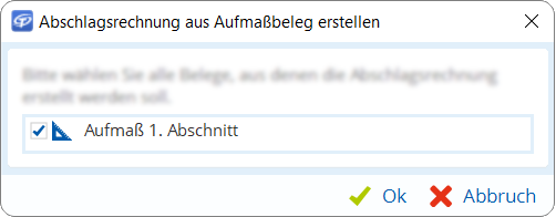 - Wählen Sie Abschlagsrechnung nach Aufmaßbeleg und bestätigen Sie mit