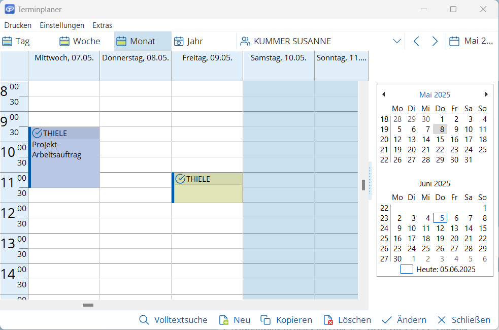 - Öffnen Sie über die Menüpunkte das Fenster Terminplaner.