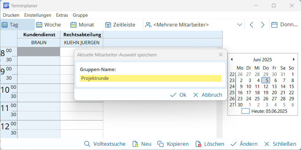 Sie haben die entsprechenden Mitarbeiter im Terminplaner ausgewählt.