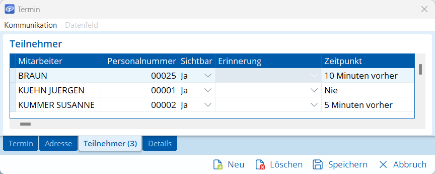 Für jeden Teilnehmer kann eine abweichende oder keine Erinnerung eingestellt werden.