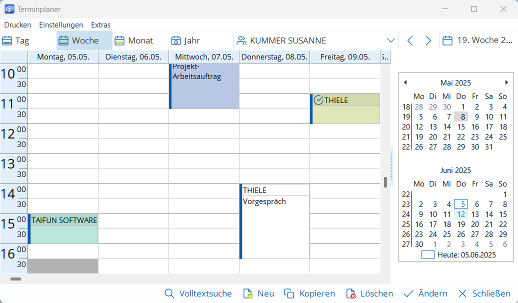Der Terminplaner ist ein hilfreiches Werkzeug im Zusammenhang mit einem TAIFUN-Hauptprogramm für Ihr Unternehmen. Probieren Sie den Terminplaner aus und entdecken Sie, welche Möglichkeiten Sie für die Arbeit mit Terminen haben.