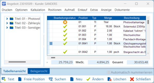 Sie können den Bearbeitungsstatus einer Position darstellen, um auf einen Blick zu erkennen, ob für eine Position bereits Preise für Kostenarten hinterlegt sind.