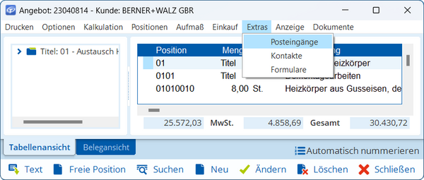Lassen Sie sich Posteingänge, Kontakte und Formulare direkt im Beleg anzeigen, um diese direkt zu bearbeiten.
