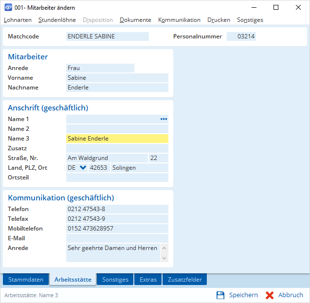 Zusätzlich zu der privaten Adresse von Mitarbeitern können sie nun auch in den Stammdaten eine geschäftliche Adresse aufnehmen. Dies kann z. B. eine bestimmte Betriebsstätte, ein externes Büro oder eine Homeoffice-Adresse sein. Natürlich können dabei datenschutzkonform die Berechtigungen für private und geschäftliche Adressen separat verwaltet werden.
