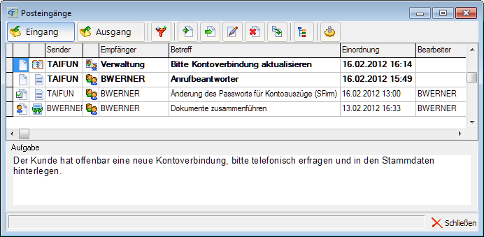 - Über Posteingänge verteilen Sie Aufgaben und geben Informationen weiter - einfach und schnell.