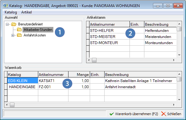 Besonders praktisch: Sie stellen im Suchbaum einen Warenkorb zusammen und übernehmen ihn in den Beleg. Einfacher geht's nicht. - Die Aufmaßerfassung ist jetzt besonders komfortabel. Sie können das Aufmaß direkt in der Übersicht erfassen. Die Positionen müssen nicht mehr einzeln geöffnet werden. Das spart Zeit und Mühe!