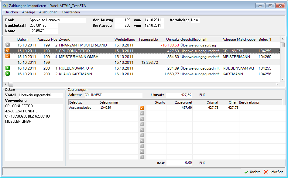 Änderungen der Zuordnung, das Erfassen von Skonti oder die Aufteilung eines Zahlungseingangs sind kein Problem. Die von Ihnen bestätigten Zuordnungen werden verarbeitet und es wird automatisch im jeweiligen Saldensatz die Zahlung angelegt. Das ist komfortabel für Sie und minimiert gleichzeitig das Risiko von Fehleingaben.