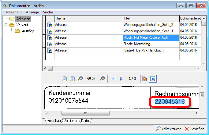 - Sortieren nach Belegdatum oder -nummer bzw. Wiedervorlage