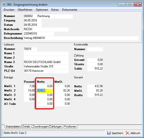 Ab sofort können Sie in Eingangsrechnungen auch Positionen erfassen. Einfach die gewünschten Positionen manuell eingeben oder aus Bestellungen, Wareneingängen oder UGL per Mausklick automatisch übernehmen.