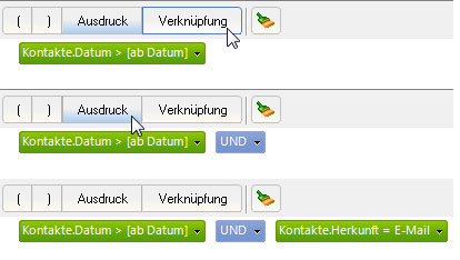 - Komplexe Suchanfragen: z. B. Name „Meier“ im PLZ-Bereich von "10000" bis "11000“