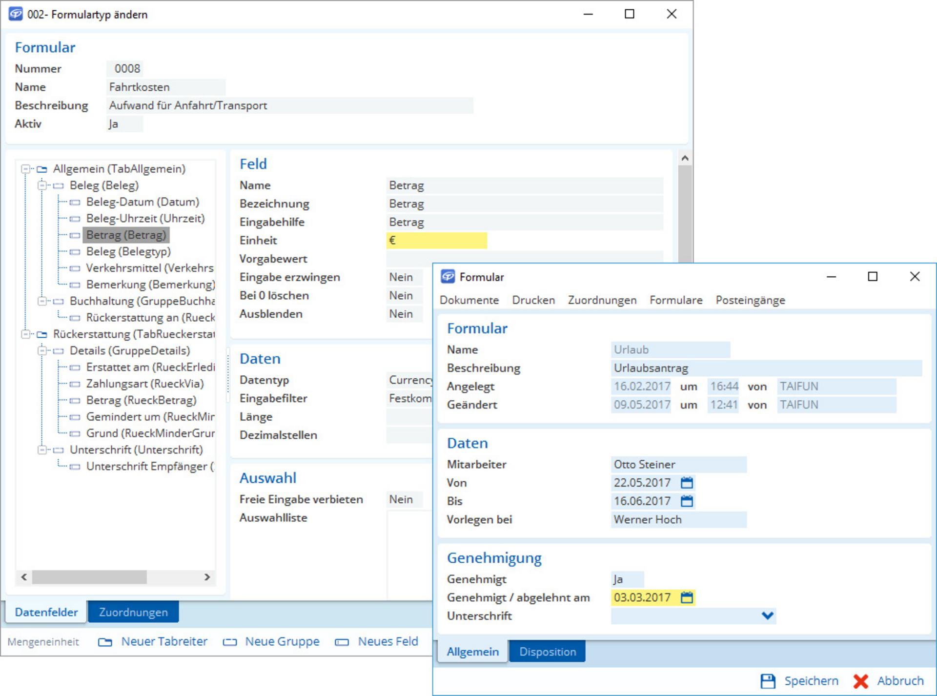 - Gruppierung der Felder in Tabreitern und Gruppen möglich