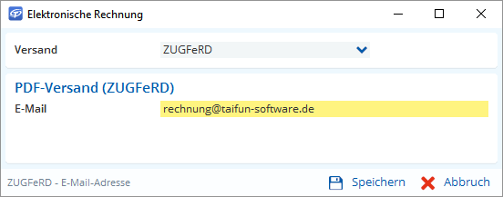 Eine weitere Neuheit: Sie können mit TAIFUN 2017 elektronische Rechnungen im ZUGFeRD-Format versenden und empfangen. Damit sparen Sie Kosten für Material und Versand!